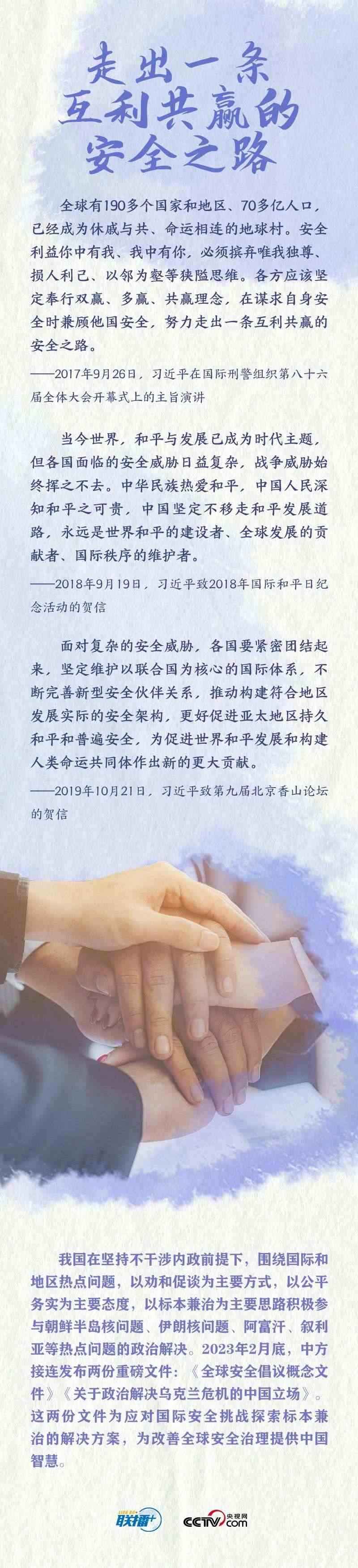 從2014年在亞信第四次峰會上提出亞洲安全觀,到2016年在二十國集團杭州峰會期間闡述中國的新安全觀,從2017年在聯(lián)合國日內瓦總部闡述如何建設持久和平、普遍安全的世界,到2022年提出全球安全倡議,習近平主席深刻洞察世界發(fā)展大勢,不斷發(fā)展和完善具有中國特色的安全理念,為破解全球安全困境指明前進方向、明確合作路徑。
