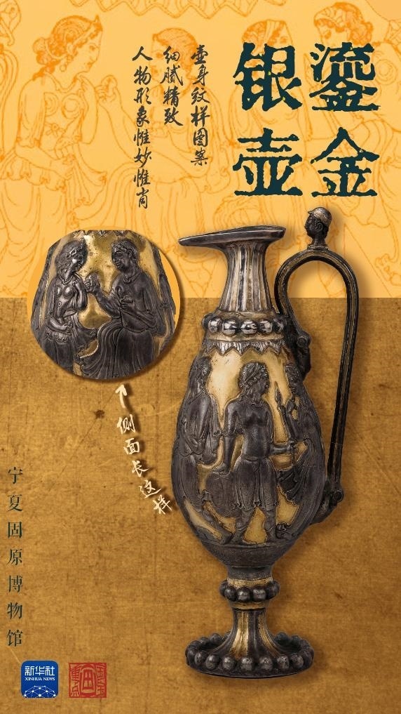 鎏金銀壺有何特殊之處?這件波斯王朝的酒具,是在薩珊時(shí)代的巴克特里亞地區(qū)制造而成,距今已有1500年歷史,壺身上的雕刻以連環(huán)畫的形式講述了希臘神話故事里的內(nèi)容?!蚌探疸y壺整體造型融合了波斯薩珊金銀器風(fēng)格、希臘風(fēng)格和巴克特里亞當(dāng)?shù)卦?。”寧夏固原博物館副館長張強(qiáng)介紹,在現(xiàn)階段出土文物中,鎏金銀壺不僅在中國只此一件,在世界現(xiàn)存的薩珊金銀器中亦屬罕見。