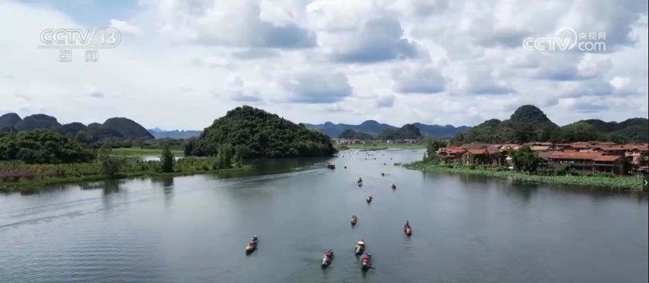 在云南普者黑,萬畝荷塘花開正盛,游人不僅可以泛舟賞荷嬉戲,還能進(jìn)入當(dāng)?shù)貪O村感受彝族撒尼人生活文化和非遺技藝。