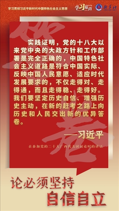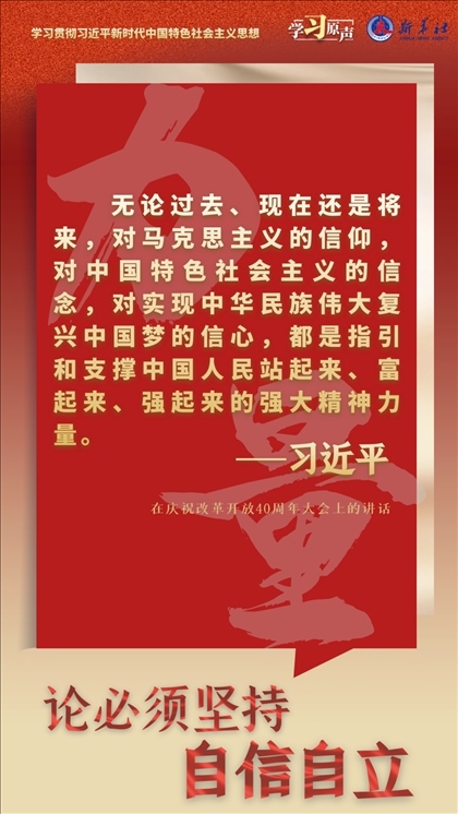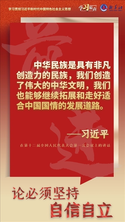 中國人民和中華民族從近代以后的深重苦難走向偉大復興的光明前景,從來就沒有教科書,更沒有現成答案。黨的百年奮斗成功道路是黨領導人民獨立自主探索開辟出來的,馬克思主義的中國篇章是中國共產黨人依靠自身力量實踐出來的,貫穿其中的一個基本點就是中國的問題必須從中國基本國情出發(fā),由中國人自己來解答。我們要堅持對馬克思主義的堅定信仰、對中國特色社會主義的堅定信念,堅定道路自信、理論自信、制度自信、文化自信,以更加積極的歷史擔當和創(chuàng)造精神為發(fā)展馬克思主義作出新的貢獻,既不能刻舟求劍、封閉僵化,也不能照抄照搬、食洋不化。
