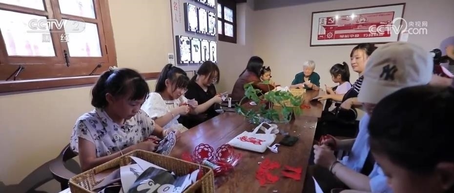 除了傳統(tǒng)店鋪,所城里還融合了很多的非遺體驗打卡點,萊州毛筆、扎染工藝、葫蘆雕刻等,其中,最具特色的當(dāng)屬民俗剪紙。