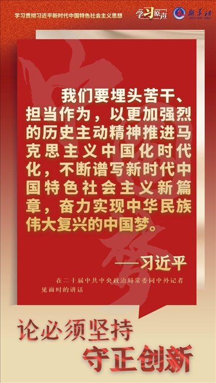 我們從事的是前無(wú)古人的偉大事業(yè),守正才能不迷失方向、不犯顛覆性錯(cuò)誤,創(chuàng)新才能把握時(shí)代、引領(lǐng)時(shí)代。我們要以科學(xué)的態(tài)度對(duì)待科學(xué)、以真理的精神追求真理,堅(jiān)持馬克思主義基本原理不動(dòng)搖,堅(jiān)持黨的全面領(lǐng)導(dǎo)不動(dòng)搖,堅(jiān)持中國(guó)特色社會(huì)主義不動(dòng)搖,緊跟時(shí)代步伐,順應(yīng)實(shí)踐發(fā)展,以滿腔熱忱對(duì)待一切新生事物,不斷拓展認(rèn)識(shí)的廣度和深度,敢于說(shuō)前人沒(méi)有說(shuō)過(guò)的新話,敢于干前人沒(méi)有干過(guò)的事情,以新的理論指導(dǎo)新的實(shí)踐。