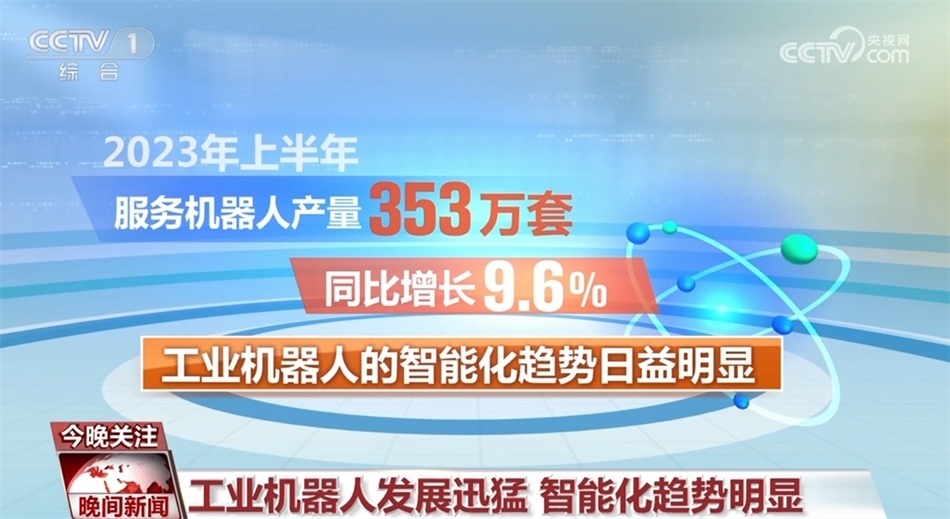 據(jù)了解,我國(guó)工業(yè)機(jī)器人銷(xiāo)量已占全球的一半以上,連續(xù)10年居世界首位。2023年上半年,工業(yè)機(jī)器人產(chǎn)量達(dá)到了22.2萬(wàn)套,同比增長(zhǎng)5.4%,服務(wù)機(jī)器人產(chǎn)量353萬(wàn)套,同比增長(zhǎng)9.6%。同時(shí),工業(yè)機(jī)器人的智能化趨勢(shì)日益明顯。