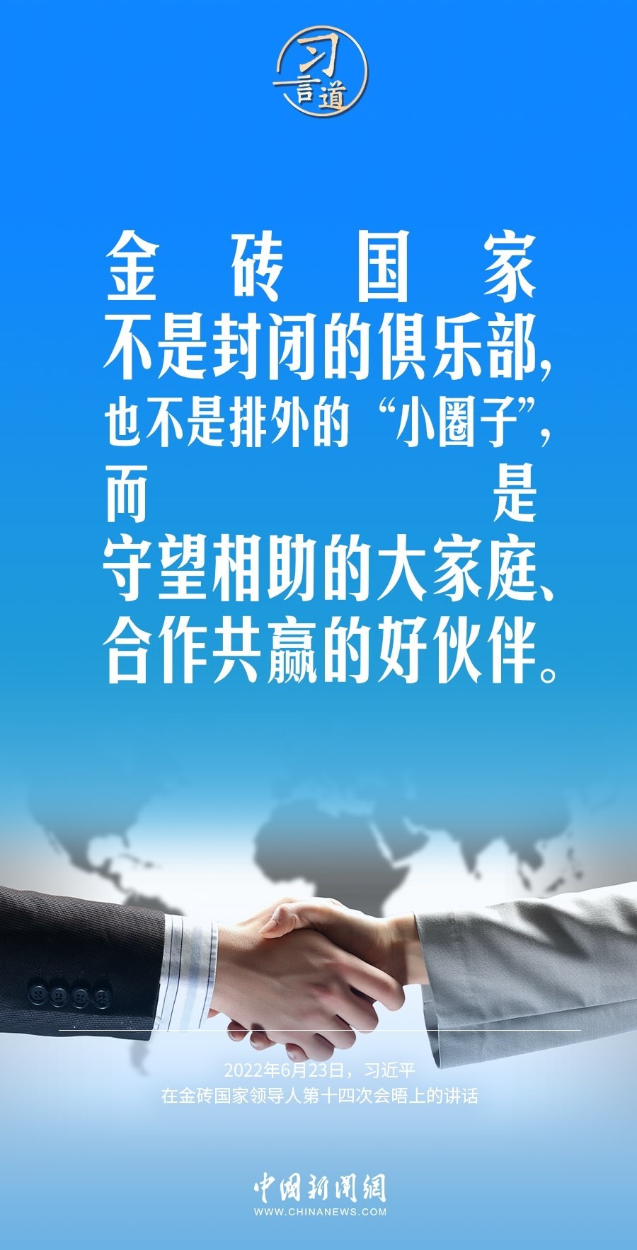 中國國家主席習(xí)近平將于8月21日至24日出席在南非約翰內(nèi)斯堡舉行的金磚國家領(lǐng)導(dǎo)人第十五次會晤并對南非進(jìn)行國事訪問。對于金磚國家合作機(jī)制,習(xí)近平主席多次在不同場合發(fā)表重要論述,他指出,金磚國家是守望相助的大家庭、合作共贏的好伙伴。
