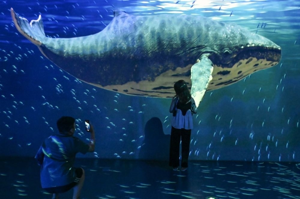 正值大型沉浸式互動數(shù)字藝術(shù)作品《鯨奇物語》光影藝術(shù)展首展上映,國家海洋博物館里人頭攢動。