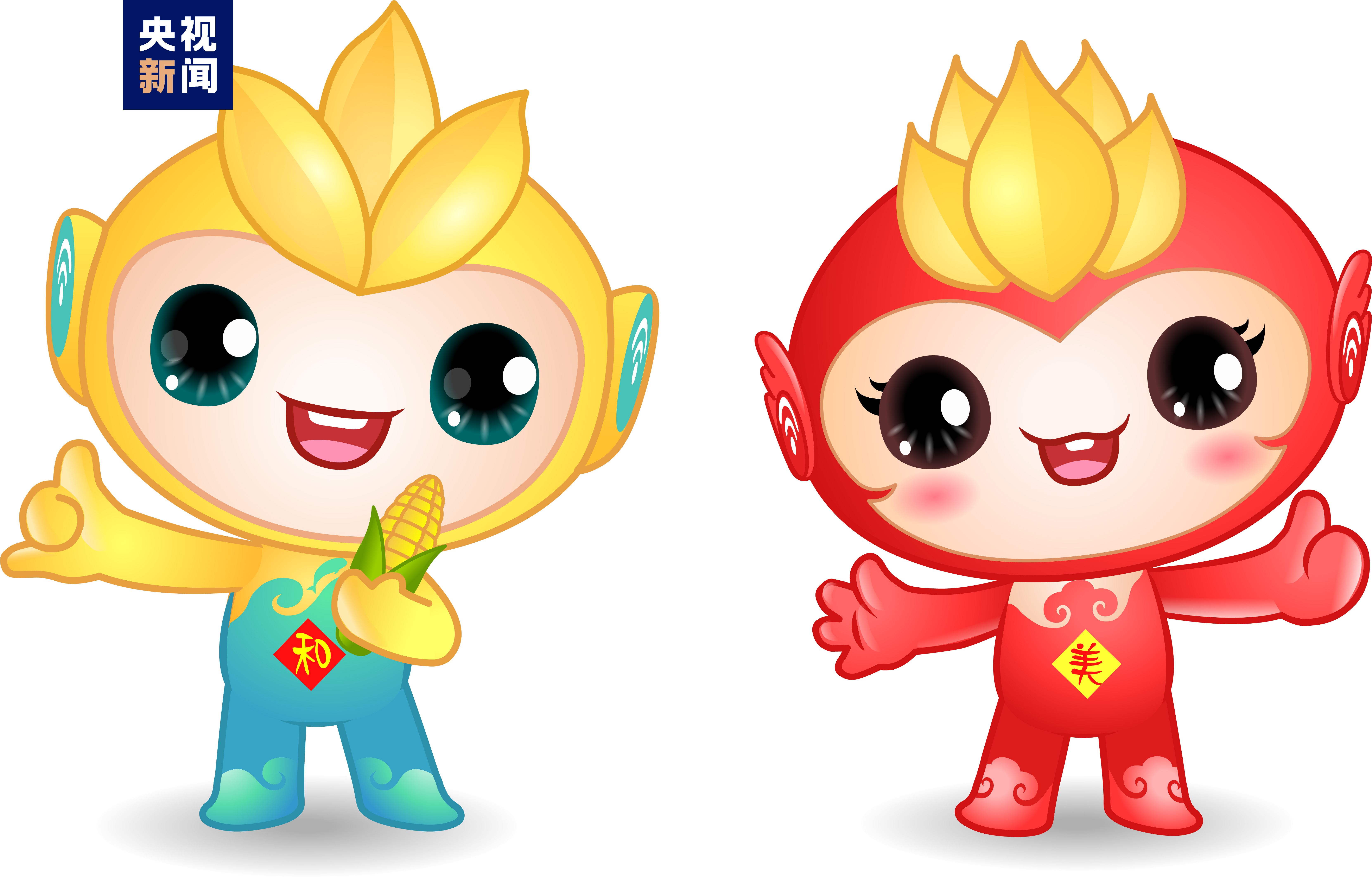 此外,今年中國農(nóng)民豐收節(jié)的吉祥物是“和和”“美美”兩個(gè)卡通IP形象,表達(dá)了億萬農(nóng)民甜甜美美的豐收喜悅、和和睦睦的幸福生活。IP卡通形象的整體設(shè)計(jì),以三大主糧“稻谷、麥穗、玉米”為造型元素,突出豐收節(jié)屬性,融入傳統(tǒng)文化符號與現(xiàn)代信息符號,傳遞豐收、喜悅、吉慶和農(nóng)業(yè)現(xiàn)代化等寓意。其中,“和和”是一個(gè)男孩形象,頭上三粒稻谷,既代表種子,又代表三生萬物,繁榮不息。藍(lán)色波浪代表長江,江豚魚躍而上,寓意長江之畔,魚米之鄉(xiāng),風(fēng)調(diào)雨順。“美美”是一個(gè)女孩形象,頭上五顆麥粒,寓意代表五谷豐登,表達(dá)了對農(nóng)民的最美好祝愿,融入了翅膀元素,昭示著中國農(nóng)業(yè)展翅騰飛,開創(chuàng)新未來。吉祥物的眼睛和耳朵上分別含有信息、數(shù)字科技元素,寓意以科技眼、智慧耳賦能現(xiàn)代農(nóng)業(yè)騰飛,反映了科技賦能、智慧富農(nóng)的新時(shí)代現(xiàn)代農(nóng)業(yè)特征。色彩以黃色和紅色為主,分別代表耕地和喜慶,也是豐收黃和中國紅,是農(nóng)民和豐收的最直觀體現(xiàn)。起名“和和、美美”,表達(dá)了億萬農(nóng)民喜氣洋洋的豐收喜悅、幸福和美的美好生活。