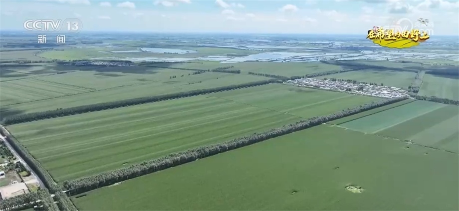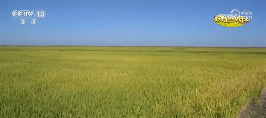 總臺央視記者 蔣樹林:這里是國家耐鹽堿水稻技術(shù)創(chuàng)新中心東北中心的千畝示范園,我手指的這個方向是沒有利用過的原始風貌的鹽堿荒灘,這邊是已經(jīng)改造后生長水稻的鹽堿地。如果后期沒有大的自然災害,今年豐收會有一定基礎。