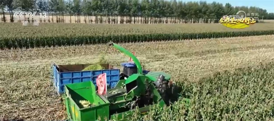 總臺記者 于文波:這里是黑龍江省綏化市青岡縣一處鮮食玉米的收割現(xiàn)場,面積大約有400畝。可以看到,現(xiàn)場有3臺大型收割機正在作業(yè),一棒棒的玉米都被收進了車廂里。鮮食玉米就是端上餐桌食用的玉米,最大的特點就是這個“鮮”字。怎么才能保證玉米的“鮮”呢?主要都體現(xiàn)在這幾個“快”上。首先是快收,鮮食玉米的生長期大約是90天,剛進入乳熟期就要開始收獲了。我們來看一下,這是準備收獲的玉米,按一下這個玉米粒,里面都是玉米漿,現(xiàn)在就是最適合收獲的狀態(tài)。只要再晚一到兩天,這個玉米粒就會變硬,吃起來口感就不好了。