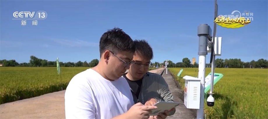 閆家崗農(nóng)場(chǎng)黨委書記 張雅南:咱們現(xiàn)在手里拿的這塊屏,就相當(dāng)于在我們田間地頭建設(shè)了一個(gè)農(nóng)業(yè)的智慧大腦。您看我手邊指的這一個(gè),下面就是視覺傳感器,它是做什么用的?它就是在水稻的不同生育期負(fù)責(zé)拍攝水稻生長的狀態(tài)。原來人工巡田,現(xiàn)在通過智慧大腦來巡田、來決策,所以更科學(xué)、更高效。