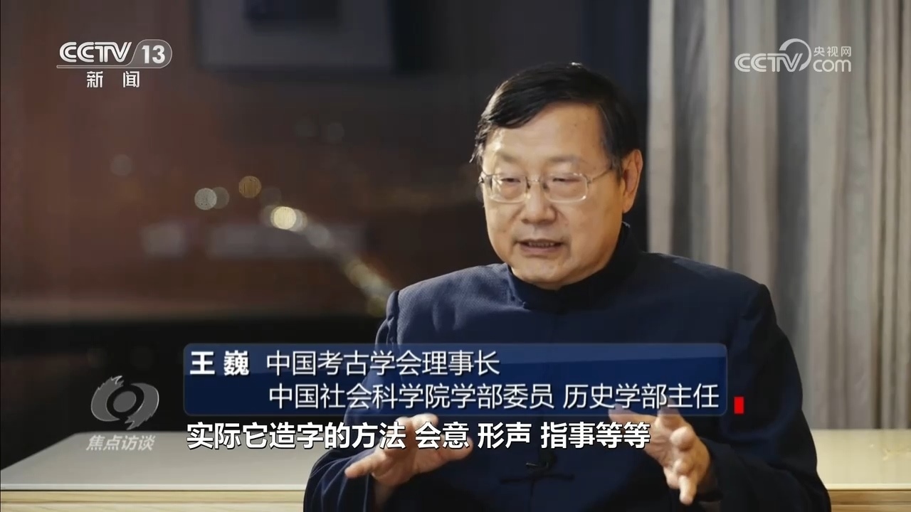 中國考古學會理事長、中國社會科學院學部委員、歷史學部主任王?。骸八胸S富的記載功能,商代的甲骨文是非常成熟的文字體系,它的造字方法、會意、形聲、指事等,它的造字方法已經非常成熟了。正是因為有漢字,我們可以知道各個時代的政治、經濟、文化、社會的記錄。”