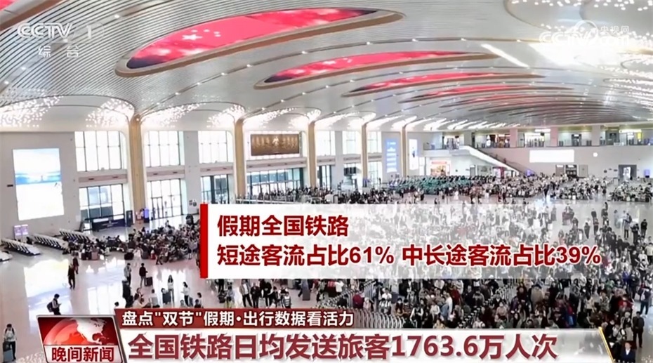 鐵路方面,今年假期,全國鐵路日均發(fā)送旅客1763.6萬人次。其中,9月29日發(fā)送旅客2009.8萬人次,創(chuàng)單日旅客發(fā)送量歷史新高。假期全國鐵路短途客流占比達(dá)到了61%,中長途客流占比為39%。