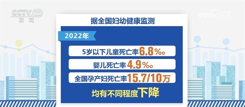在婦幼健康方面,2022年我國孕產婦產前檢查率97.9%,產后訪視率96.5%。與上年比較,產前檢查率和產后訪視率均有提高。2022年全國住院分娩率為99.94%,基本實現(xiàn)全部住院分娩。據(jù)全國婦幼健康監(jiān)測,2022年,我國5歲以下兒童死亡率6.8‰,嬰兒死亡率4.9‰,全國孕產婦死亡率為15.7/10萬,均有不同程度下降。
