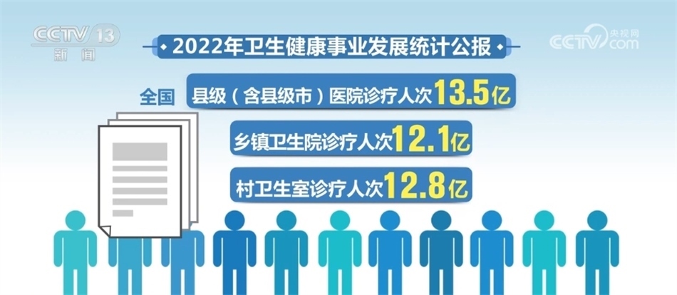 到2022年末,全國共有縣級(含縣級市)醫(yī)院17555所,鄉(xiāng)鎮(zhèn)衛(wèi)生院3.4萬個,村衛(wèi)生室58.8萬個,全國縣級(含縣級市)醫(yī)院診療人次13.5億,鄉(xiāng)鎮(zhèn)衛(wèi)生院診療人次12.1億,村衛(wèi)生室診療人次12.8億。設立社區(qū)衛(wèi)生服務中心(站)36448個,全國社區(qū)衛(wèi)生服務中心診療人次6.9億,社區(qū)衛(wèi)生服務站診療人次1.4億。
