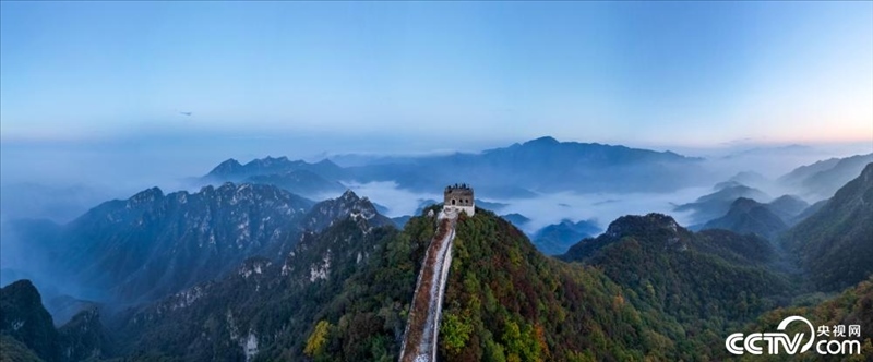 北京,箭扣長(zhǎng)城周圍層林盡染,云霧縹緲,宛如仙境。