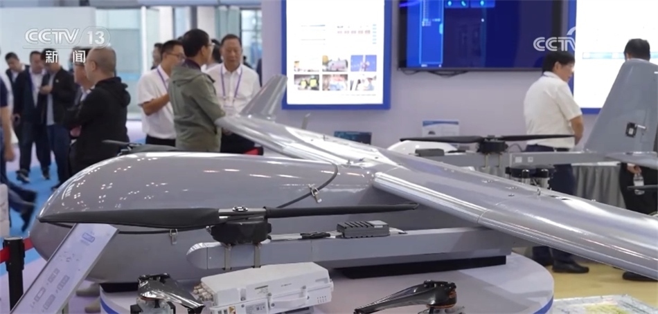 ?????? 在展會的未來產(chǎn)業(yè)館,“上天入?!钡母呖萍夹庐a(chǎn)品讓眾多觀眾駐足體驗(yàn)?,F(xiàn)在您看到的就是一架垂直起降式的衛(wèi)星通信無人機(jī),它搭載了國產(chǎn)的亞太衛(wèi)星技術(shù),目前已經(jīng)被廣泛應(yīng)用于應(yīng)急救援、公安消防、水利農(nóng)林等各個領(lǐng)域,這個機(jī)器的翼展只有六米,可以適應(yīng)各種地形的起降。?