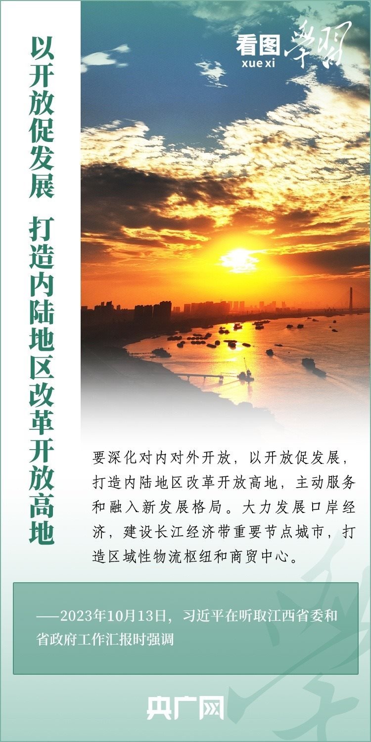 10月10日至13日,習(xí)近平總書記在江西九江、景德鎮(zhèn)、上饒等地,深入長江岸線、企業(yè)、歷史文化街區(qū)、農(nóng)村等進(jìn)行調(diào)研??倳洀?qiáng)調(diào),江西要著眼高質(zhì)量發(fā)展、綠色發(fā)展、低碳發(fā)展等新要求,解放思想、開拓進(jìn)取,揚(yáng)長補(bǔ)短、固本興新,努力在加快革命老區(qū)高質(zhì)量發(fā)展上走在前、在推動中部地區(qū)崛起上勇爭先、在推進(jìn)長江經(jīng)濟(jì)帶發(fā)展上善作為,奮力譜寫中國式現(xiàn)代化江西篇章。一起來學(xué)習(xí)!