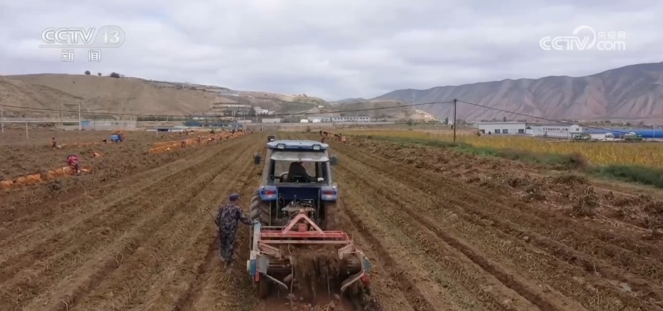 在定西市安定區(qū)的馬鈴薯種植基地,大型采挖機械正在作業(yè)。一顆顆飽滿圓潤的馬鈴薯破土而出,種植戶們忙著撿拾、裝袋。