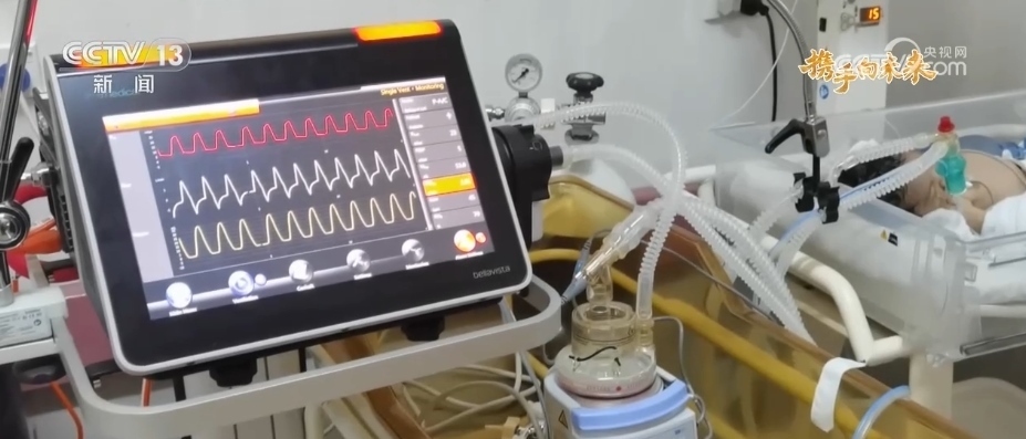 這是一臺特殊的呼吸機。呼吸機主機是從當?shù)蒯t(yī)院庫房找到的,主要用于急救車危重癥轉(zhuǎn)運,但一直沒有找到配套的新生兒呼吸管路和濕化器。不久前,中國的醫(yī)院通過海運寄來了合適的呼吸管路和濕化器,經(jīng)過調(diào)試后,終于組裝了一臺可以正常運行的新生兒呼吸機。