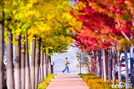 2023年10月17日,沈陽農(nóng)業(yè)大學(xué)迎來最佳觀賞季,金黃的銀杏、火紅的楓樹,吸引人們前來打卡拍照。