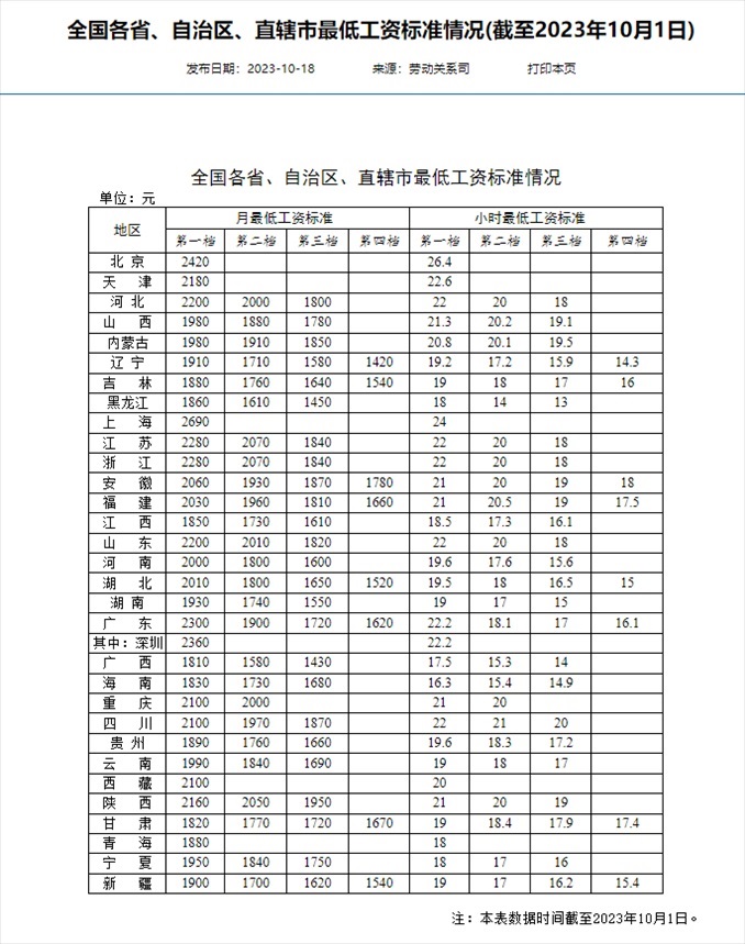 ·全國打工人最低工資標準:京滬最高,河南等16省份第一檔月薪不低于2000元。