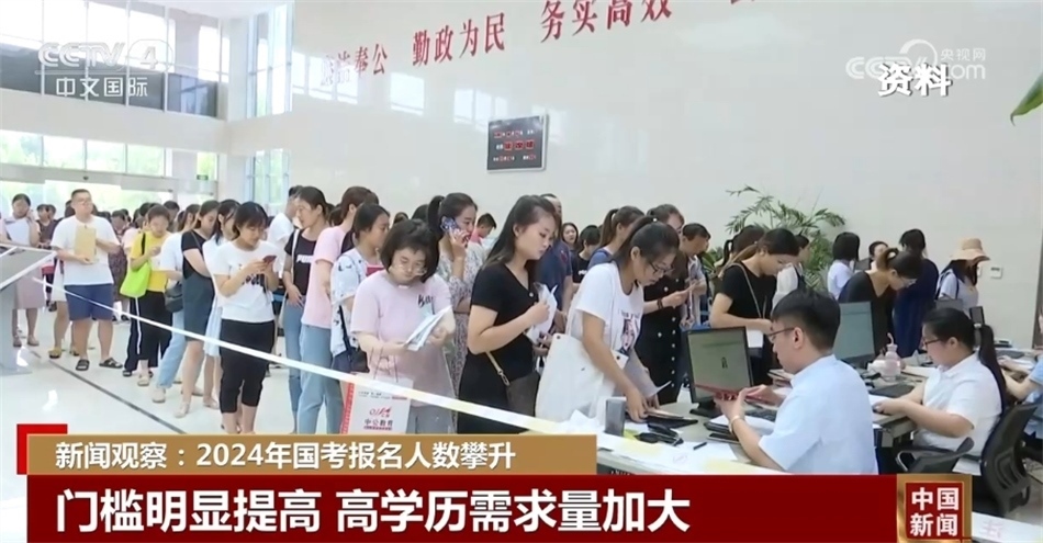 央視網(wǎng)消息:統(tǒng)計(jì)數(shù)據(jù)顯示,2024年國(guó)考報(bào)名人數(shù)逐漸攀升。截至10月22日16時(shí),1744711人提交報(bào)名申請(qǐng),比去年同期增加22萬(wàn)余人,其中1390420人通過審核。目前,平均競(jìng)爭(zhēng)比為35比1,略高于去年同期競(jìng)爭(zhēng)水平。