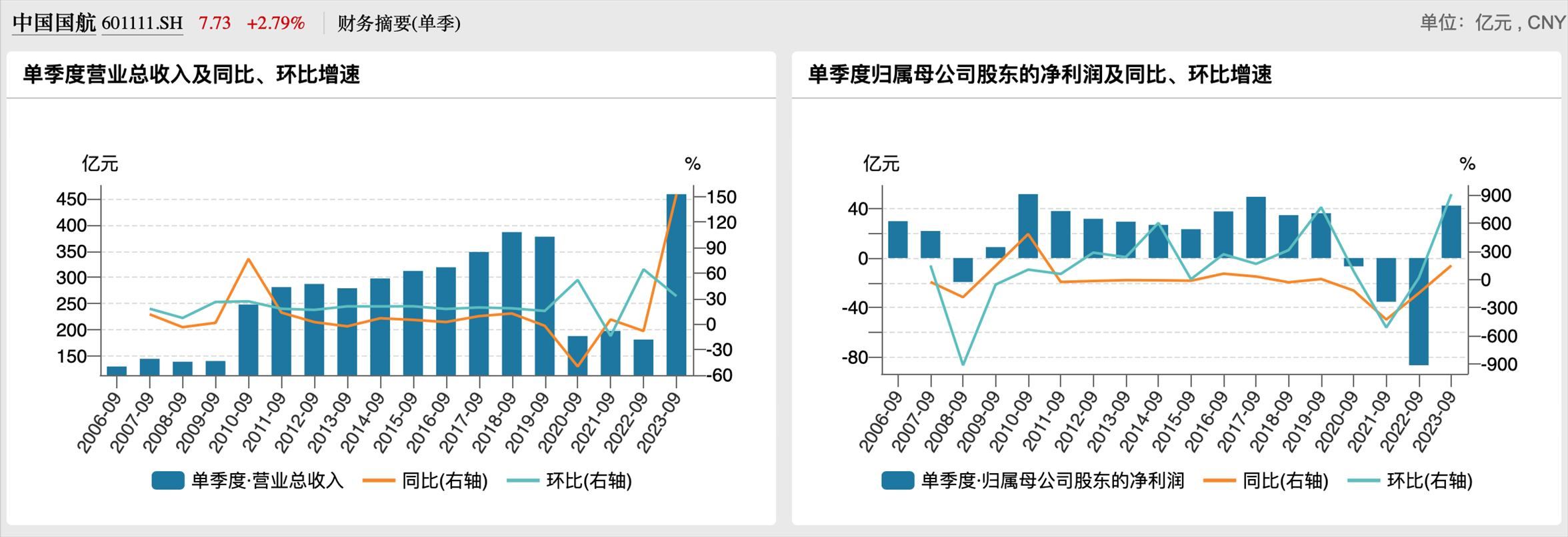 國航歷年三季度業(yè)績