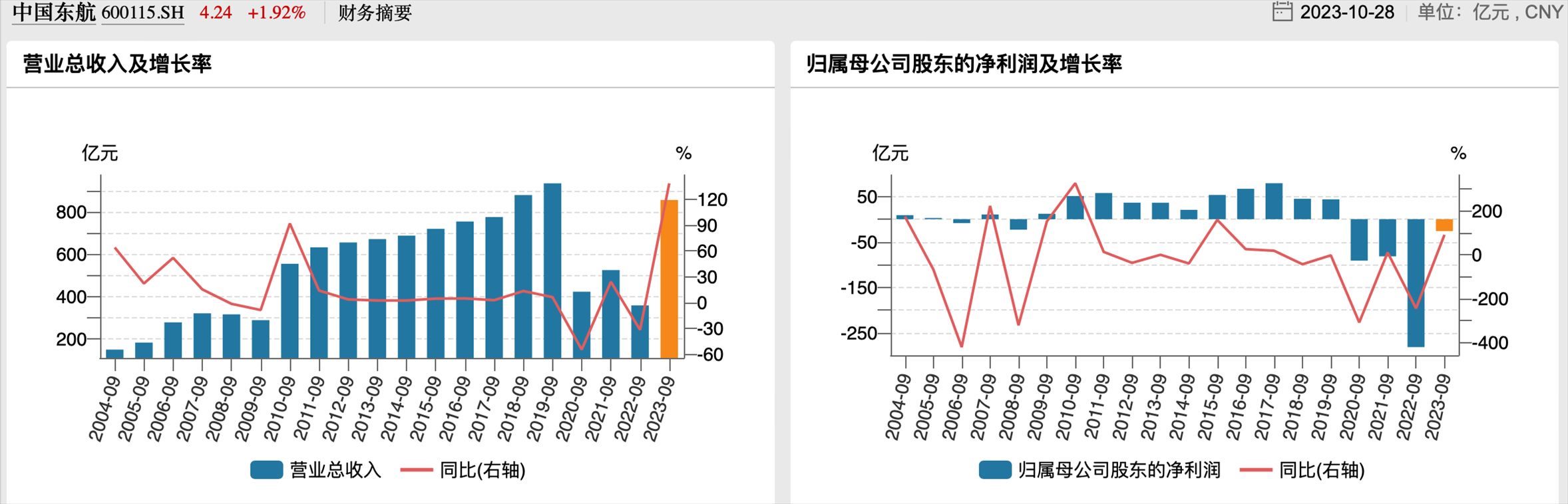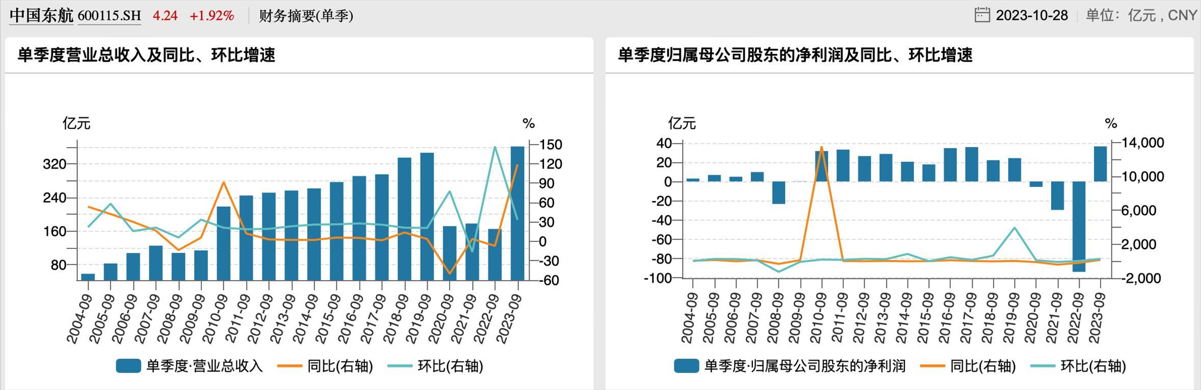 東航歷年三季度業(yè)績
