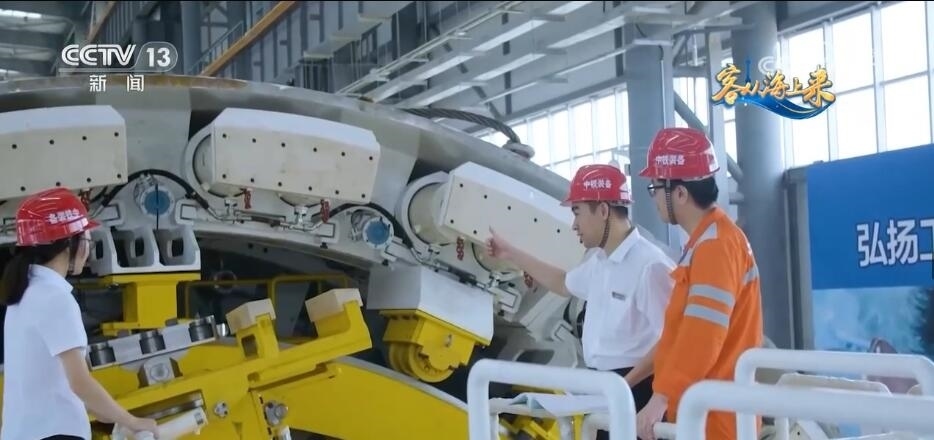 總臺央視記者 陳晰:大家順著我的手看過去,盾構(gòu)機最前端黑色的、像滾輪一樣的組件就是刀具,也是整個產(chǎn)業(yè)鏈上的關鍵點。不同的地質(zhì)對刀具的硬度也有不同的要求。比如,花崗巖就需要硬度很強的刀具,而這種泥沙巖就得用柔韌性好的刀具。