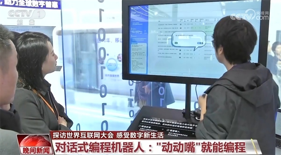 在此次互聯(lián)網(wǎng)之光博覽會(huì)的數(shù)字技術(shù)展區(qū),有數(shù)十家科技企業(yè)都展出了人工智能大語言模型應(yīng)用產(chǎn)品,覆蓋了日常生活、生產(chǎn)制造、安全防護(hù)等多個(gè)行業(yè)領(lǐng)域。這是一款對話式編程機(jī)器人,通過基于人工智能大模型的應(yīng)用平臺,非專業(yè)人士不用學(xué)寫代碼,只要“動(dòng)動(dòng)嘴”就能編寫相關(guān)應(yīng)用程序,并通過指令來完成多種日??此品爆嵉牟僮?。