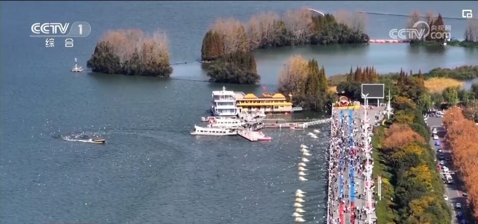 央視網(wǎng)消息:天氣轉(zhuǎn)冷,候鳥(niǎo)越冬南遷。成群結(jié)隊(duì)的候鳥(niǎo)或翱翔于濕地上空,或漫游于水面之上,與天空水面交相輝映,構(gòu)成了冬日里的一幅美麗畫(huà)卷。
