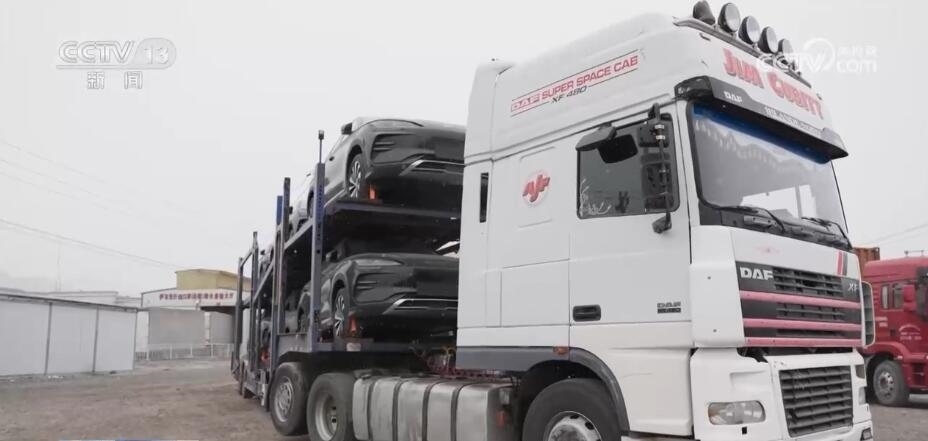 總臺(tái)記者 劉菲:在伊爾克什坦口岸的貨場(chǎng)里,我們看到很多輛像我身后這樣搭載著商品車的掛車,粗略地?cái)?shù)一數(shù),一個(gè)小時(shí)的時(shí)間里,像這樣的車就是六七輛。今年以來,在南疆的公路口岸中,伊爾克什坦口岸出口的商品車數(shù)量居于首位。?