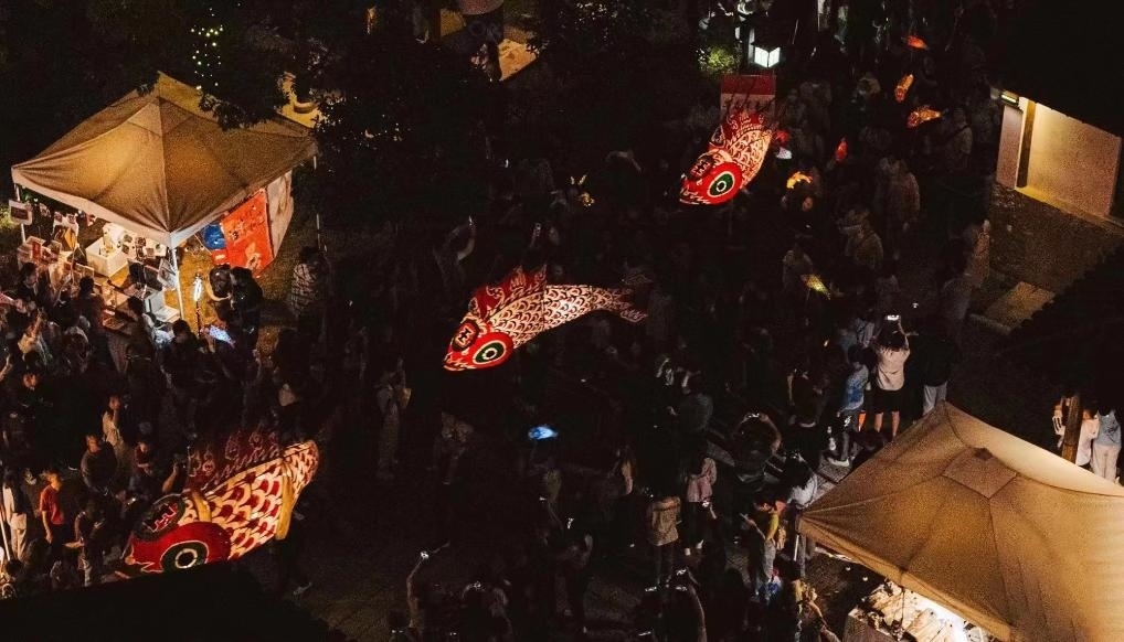 中秋國慶長假期間,汪滿田魚燈參加了蘇州石湖景區(qū)的手作藝術(shù)節(jié)。(張小君 攝)