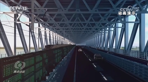 而說常泰長江大橋是個(gè)超級(jí)工程,不僅因?yàn)樗小翱缍茸畲蟆钡倪@個(gè)頭銜,更因?yàn)樗鼡碛卸喾N功能,在這座上下兩層的橋上,上層為六車道高速公路,下層為兩線鐵路和四車道普通公路,這也是長江上首座“三位一體”的跨江大橋。那么,多種功能的設(shè)計(jì)又是出于什么樣的考慮呢?