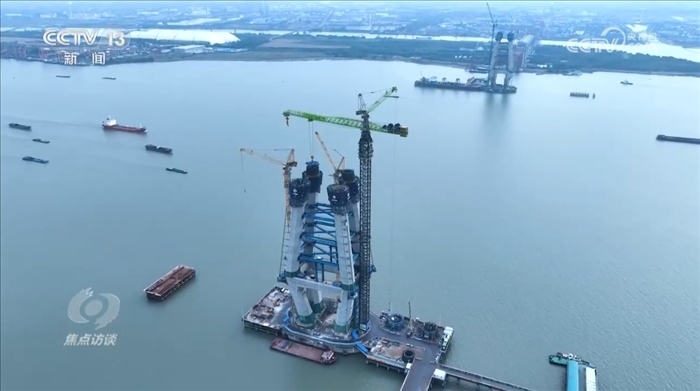 央視網(wǎng)消息(焦點(diǎn)訪談):近些年來,中國在多個(gè)領(lǐng)域創(chuàng)造了大量的世界之最。這一個(gè)個(gè)的 “世界首次”“世界第一”深刻地改變了中國,也令世界驚嘆。從今天起《焦點(diǎn)訪談》欄目推出“登攀”系列節(jié)目,我們來看一看中國奇跡誕生背后的故事?!胺晟介_路、遇水架橋”,這是中國基建人的日常,他們不斷突破,創(chuàng)造了一個(gè)個(gè)登頂世界之最的基建名場面。今天我們要講的是一座修建當(dāng)中的長江大橋——位于江蘇常州和泰州之間的常泰長江大橋,作為世界上在建的最大跨度的公鐵兩用斜拉橋,這座大橋在建設(shè)的過程當(dāng)中遇到了很多困難,也頻頻上演著突破和創(chuàng)新。