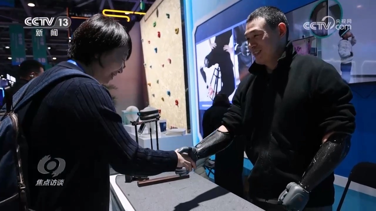博覽會(huì)現(xiàn)場,一位坐在角落里的中年男子引起了我們的注意。他叫倪敏成,九歲時(shí)因?yàn)橐馔馐ルp手,但讓他更感意外的是,30年后,腦機(jī)接口技術(shù)讓他重新?lián)碛辛艘浑p智能仿生手。