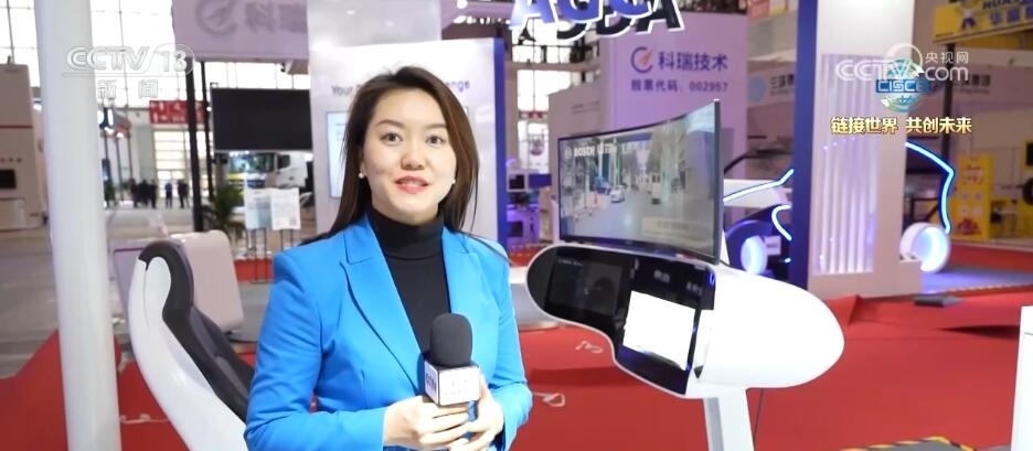 總臺(tái)央視記者 張歆:在本屆鏈博會(huì)上,我們也看到了許多智能專用車。大家可以看到在我身旁就是一臺(tái)智能航空食品專用車,這臺(tái)重量達(dá)到21噸左右的“大塊頭”裝了許多個(gè)雷達(dá),通過5G的算法就能夠?qū)崿F(xiàn)無人駕駛和無人作業(yè)。