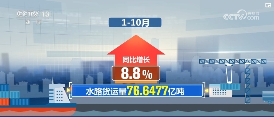 貨運方面,1—10月,我國公路貨運量332.9567億噸,同比增長8.2%;水路貨運量達76.6477億噸,同比增長8.8%。