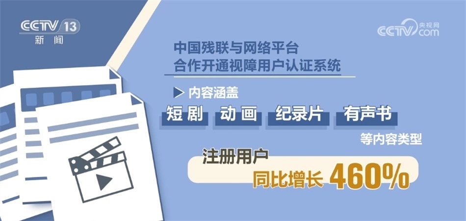 數(shù)據(jù)顯示,中國(guó)殘聯(lián)與網(wǎng)絡(luò)平臺(tái)合作開通視障用戶認(rèn)證系統(tǒng)一年以來,無(wú)障礙影視作品已超2000部(集),同比增長(zhǎng)超400%,內(nèi)容涵蓋短劇、動(dòng)畫、紀(jì)錄片、有聲書等內(nèi)容類型,注冊(cè)用戶同比增長(zhǎng)460%。