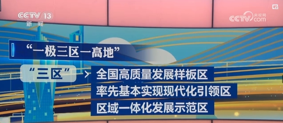 其中,“一極”就是全國發(fā)展強勁活躍增長極,“三區(qū)”指的是全國高質(zhì)量發(fā)展樣板區(qū)、率先基本實現(xiàn)現(xiàn)代化引領(lǐng)區(qū)、區(qū)域一體化發(fā)展示范區(qū),而“一高地”則是指新時代改革開放新高地。