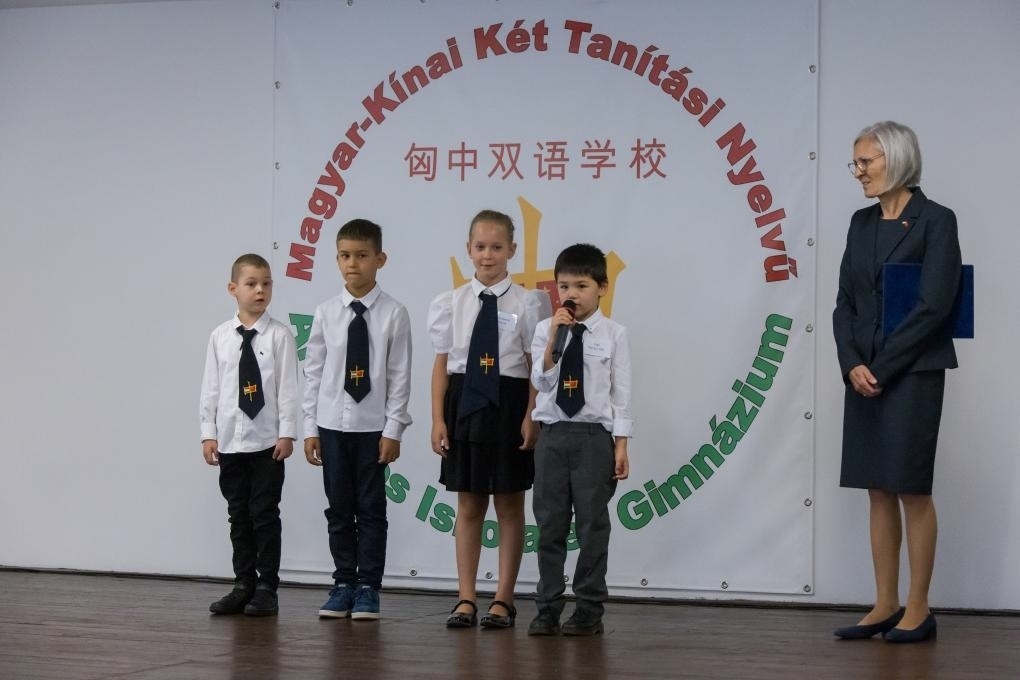 2022年9月1日,在匈牙利首都布達(dá)佩斯,學(xué)生們參加匈中雙語(yǔ)學(xué)校新學(xué)年開(kāi)學(xué)典禮。