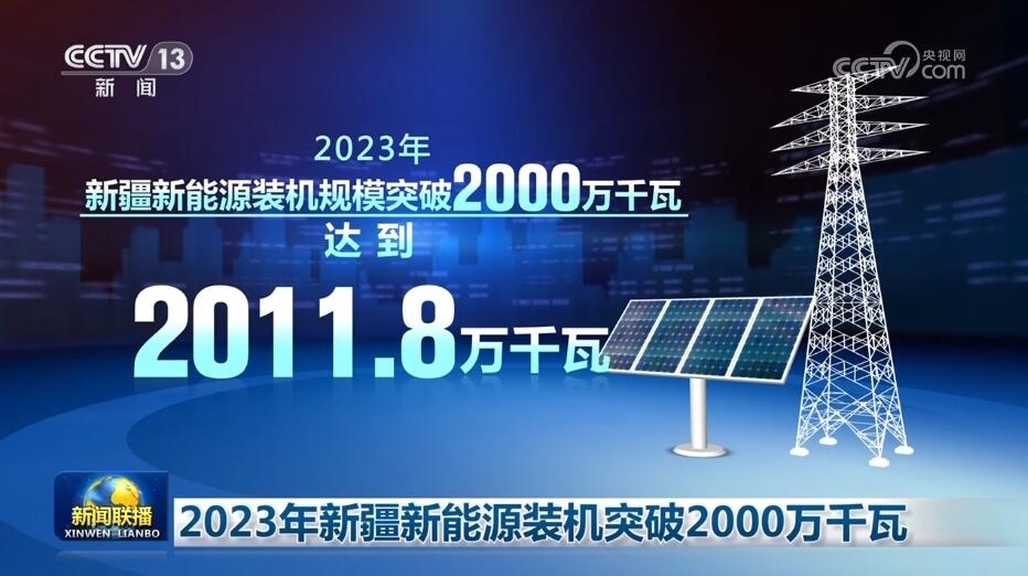 央視網(wǎng)消息(新聞聯(lián)播):國(guó)家電網(wǎng)最新數(shù)據(jù)顯示,2023年,新疆新能源裝機(jī)規(guī)模突破2000萬(wàn)千瓦,達(dá)到2011.8萬(wàn)千瓦,是2022年全年總和的5倍,新增新能源裝機(jī)規(guī)模在全國(guó)排名第一,約占到西北電網(wǎng)的42%。