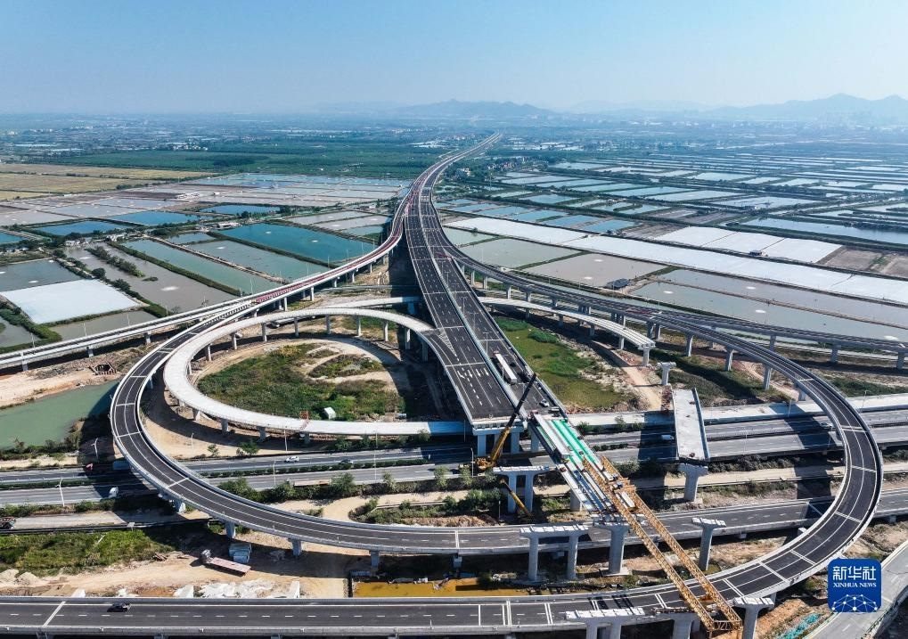 這是廣東鶴港高速高欄港樞紐(2023年12月8日攝,無人機照片)。新華社記者 劉大偉 攝