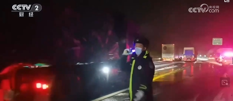 為降低連日降雪對高速公路帶來的影響,山西高速交警聯(lián)合相關部門,連夜進行撒鹽融雪作業(yè),以防止夜間路面結(jié)冰。由于積雪和濕滑的路面條件,部分高速公路不具備安全通行條件,交管部門開始對不同車型實施管控措施,對滯留高速公路的車輛進行疏導分流,并救助受困群眾。交警在夜間巡邏時,遇到一輛貨車在上坡路段打滑。