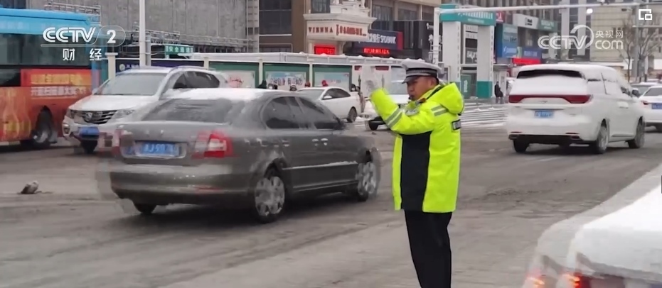 這幾天,山東德州城區(qū)各大隊民警全部到崗到位,疏導交通、鏟雪除冰。