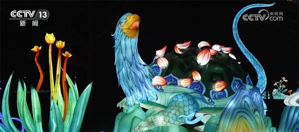 據(jù)組織方介紹,本次燈會將中國的燈彩制造技藝與巴黎風情園的道路園景有序結(jié)合,整場燈會以點連線、穿線成面,共設(shè)東情西韻、山海有靈、煙火市集三大展區(qū)。2024年適逢龍年,龍的元素出現(xiàn)在景區(qū)各處。穿行在園區(qū),法國觀眾不僅能欣賞到傳統(tǒng)的十二生肖、亭臺樓閣,更能沉浸在《山海經(jīng)》各類瑞獸奇珍創(chuàng)造的奇幻世界當中。