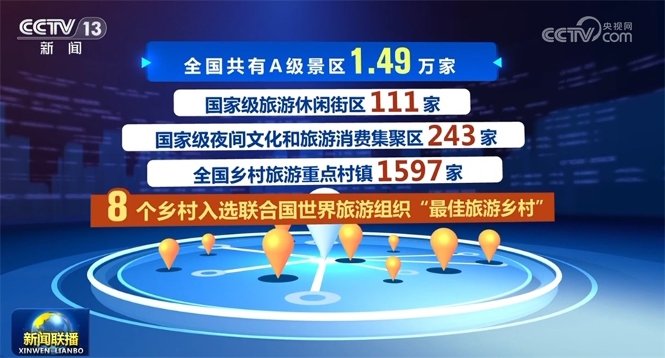 豐富優(yōu)質(zhì)旅游產(chǎn)品供給。目前全國共有A級景區(qū)1.49萬家,國家級旅游休閑街區(qū)111家,國家級夜間文化和旅游消費(fèi)集聚區(qū)243家,全國鄉(xiāng)村旅游重點(diǎn)村鎮(zhèn)1597家,8個(gè)鄉(xiāng)村入選聯(lián)合國世界旅游組織“最佳旅游鄉(xiāng)村”,成為文化和旅游賦能鄉(xiāng)村振興典型案例。