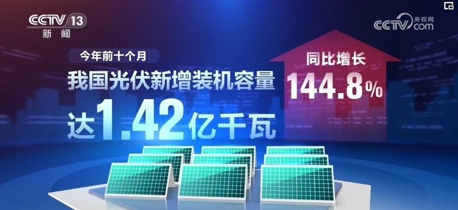 2023年前10個(gè)月,我國光伏新增裝機(jī)容量達(dá)1.42億千瓦,同比增長144.8%。