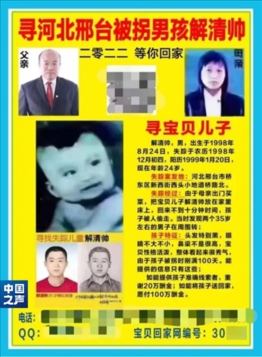 那是尋子25年的第一年。第一時(shí)間報(bào)警、發(fā)動(dòng)親友尋找,能想到的措施,解克鋒都用了。邢臺(tái)周邊、北京、河南,騎自行車、摩托車、坐火車,有一絲希望的地方,夫妻倆都去過?!氨M快找到孩子吧,再耽誤下去,孩子長大變了模樣,從眼前走過也認(rèn)不出了”, 這是一個(gè)父親最深的恐懼。