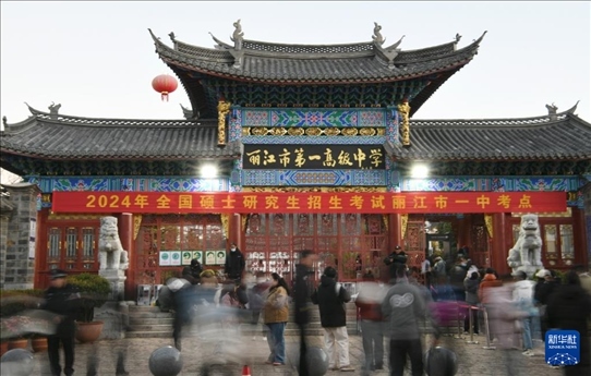 12月23日,在云南省麗江市一中考點,考生準(zhǔn)備進入考場。