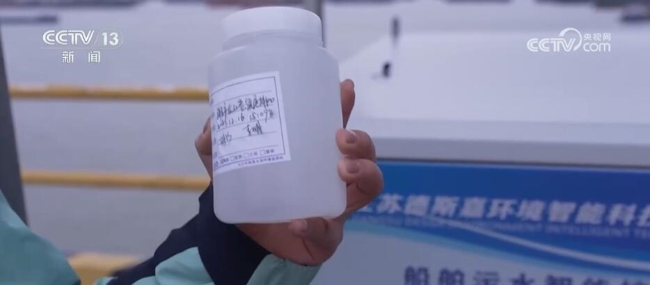 您看,這會在江面上不少大貨船旁都有一艘小船緊挨著它,這艘小船是污染物集中接收船,就相當(dāng)于長江上的“垃圾回收站”,連接兩艘船的管道后,船上生活污水即可被回收到接收裝置中。您看,我手里這杯清澈的水就是集中處理后的污水,目前達(dá)到了一級A類的標(biāo)準(zhǔn),也將會被重新直排回長江。?
